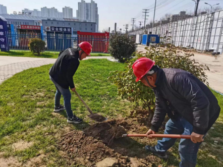 第一分公司紫郡府項目部為學習貫徹公司《環境保護和節能減排管理辦法》,樹牢安全施工、綠色施工理念。在植樹節來臨之際,為美化、凈化工作環境,增強團結互助意識,項目黨員及班子成員帶頭開展植樹活動。