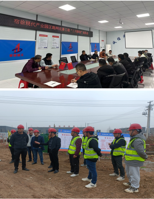 3月22日第六分公司在宿徐現(xiàn)代產(chǎn)業(yè)園市政項(xiàng)目召開“黨員先鋒號(hào)、工人先鋒號(hào)、青年文明號(hào)”三號(hào)聯(lián)創(chuàng)工作動(dòng)員會(huì)。