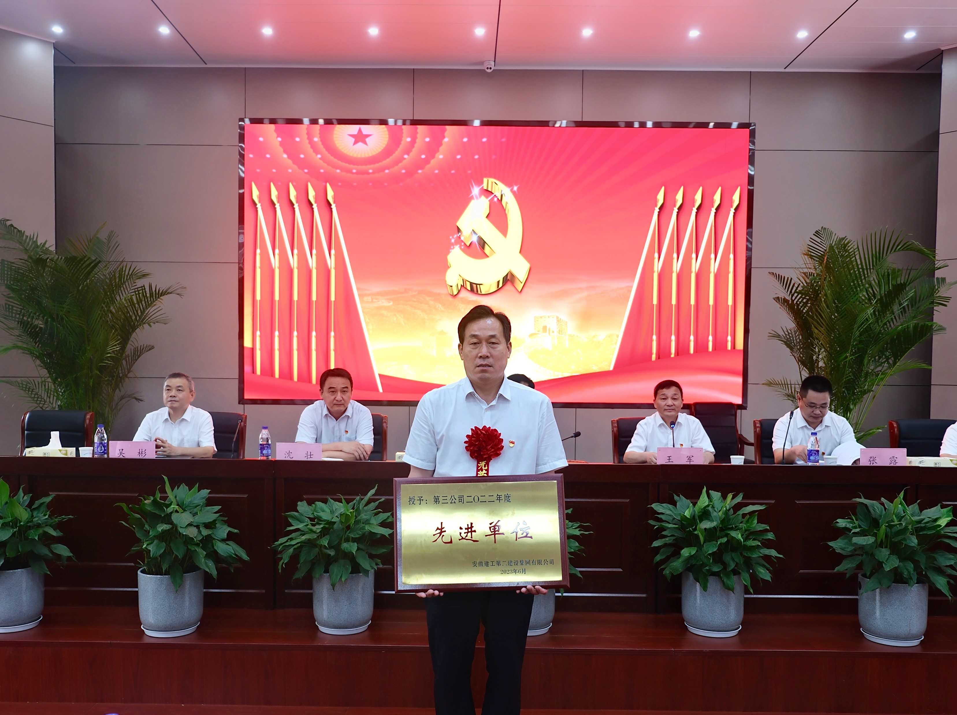 為慶祝中國共產黨成立102周年,深入開展學習貫徹習近平新時代中國特色社會主義思想主題教育,落實黨的二十大精神,6月29日上午,建工二建集團在新會議室召開慶祝建黨102周年表彰暨黨課報告會。公司在肥領導、機關部門負責人及黨員、所屬單位領導班子成員、群團工作人員、公司黨委2022年度“兩優一先”受表彰集體及受表彰人員代表、公司2022年度“先進集體”“先進個人”受表彰集體及受表彰人員代表,公司團委2022年度“兩優一紅”受表彰集體及受表彰人員代表,部分預備黨員參會。黨委副書記、總經理葛輝出席會議并作黨課報告。會議由黨委副書記、工會主席王軍主持。