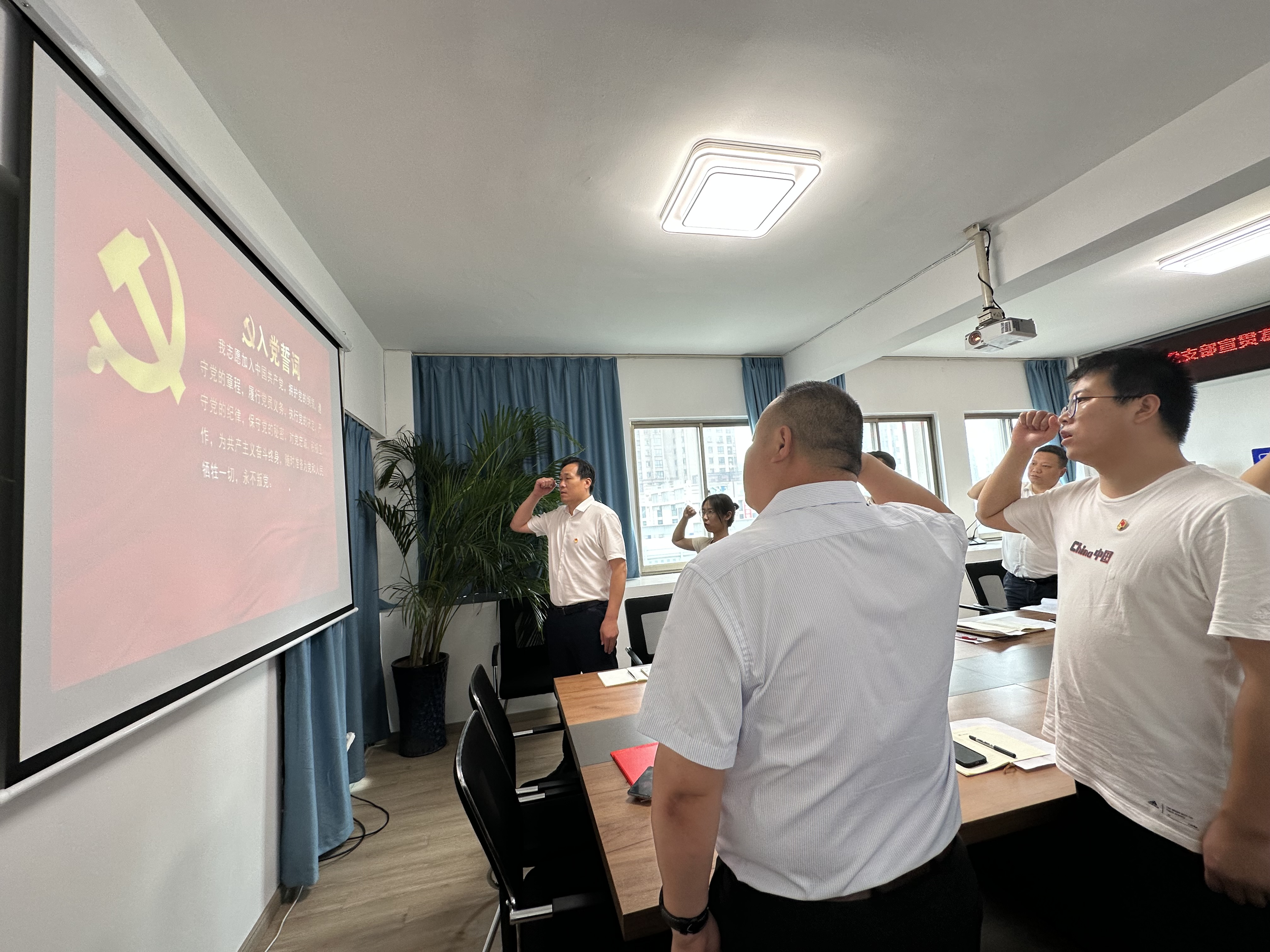 隨后,馬福才帶領全體黨員面對黨旗莊嚴宣誓,鏗鏘有力的誓言,是不忘初心、牢記使命的莊嚴承諾,時刻提醒黨員干部牢記肩負的責任和使命。