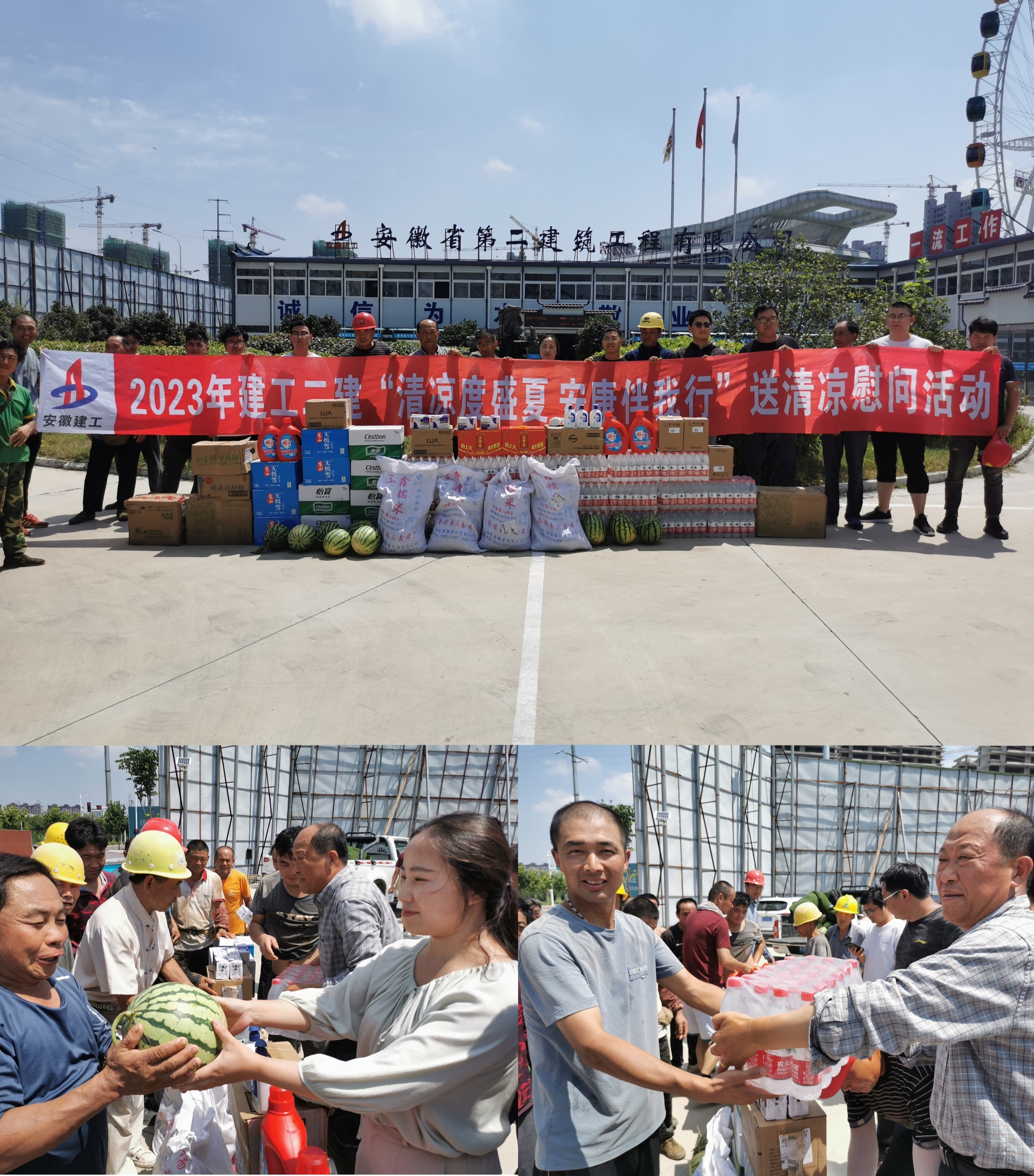 會后,為項目部一線職工發放“夏送清涼”物資。