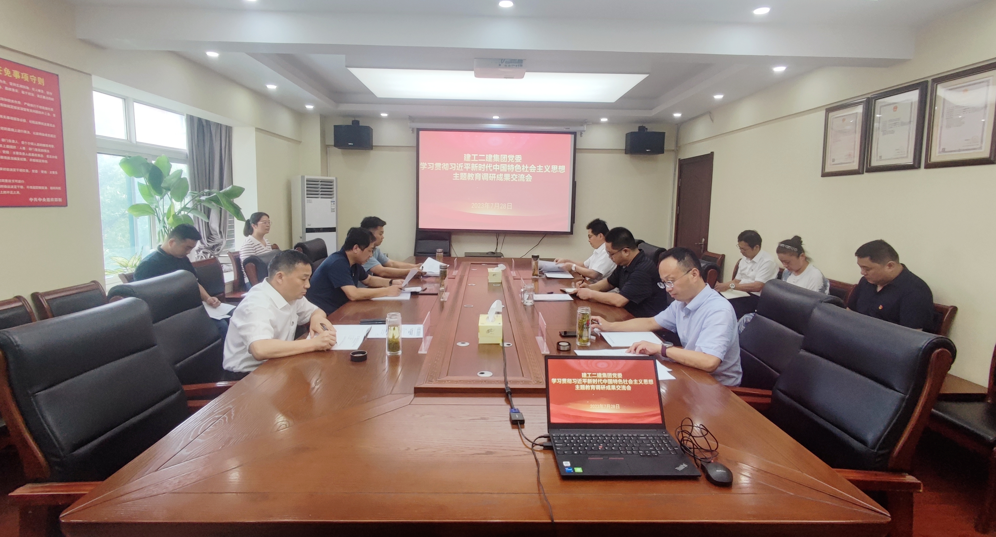 7月28日下午,建工二建集團黨委召開學習貫徹習近平新時代中國特色社會主義思想主題教育調研成果交流會。公司在肥領導班子成員參會,黨委副書記、總經理葛輝主持會議。