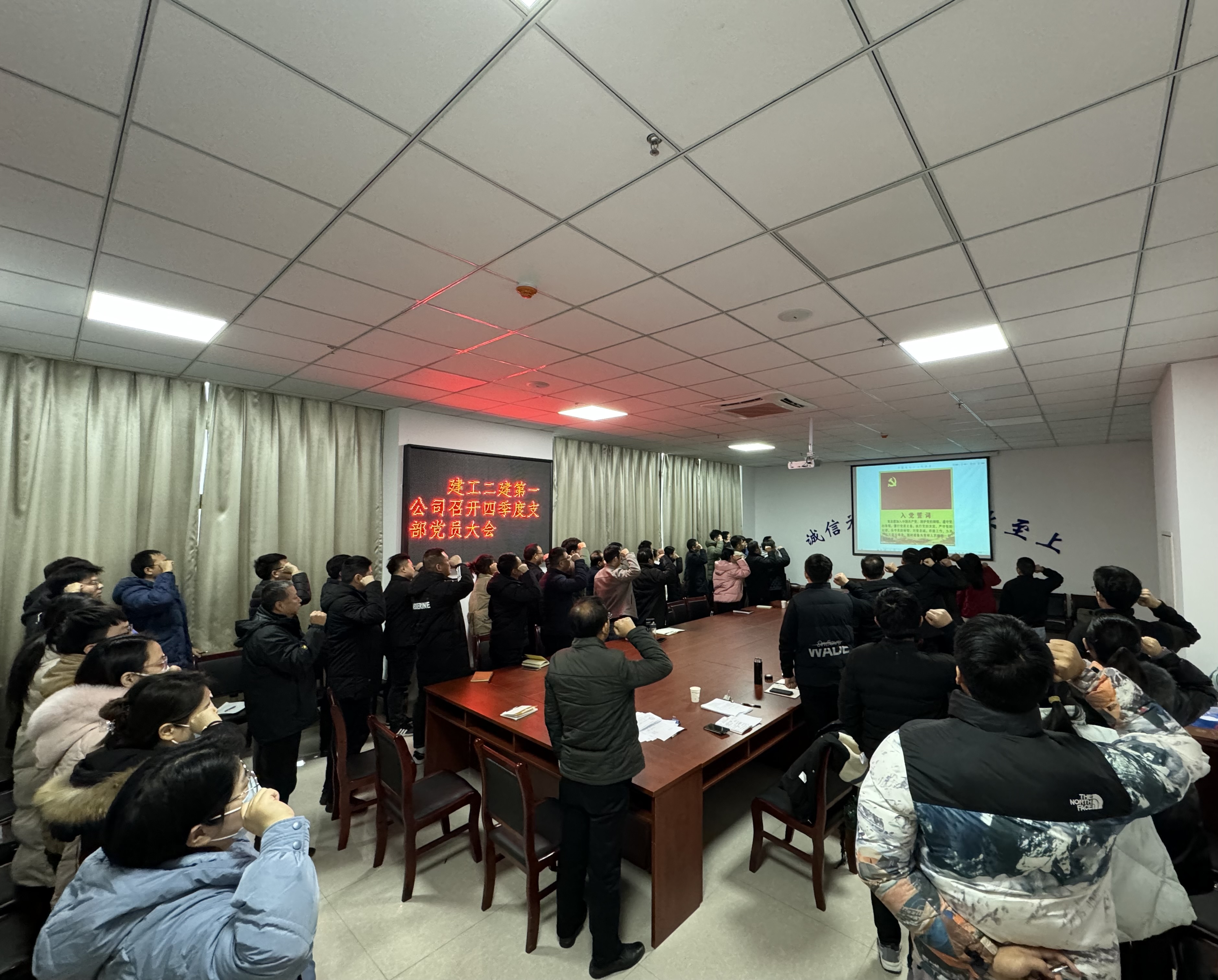 12月15日上午,第一公司在三樓會議室召開2023年四季度支部黨員大會,第一公司全體黨員、統戰人士參會。