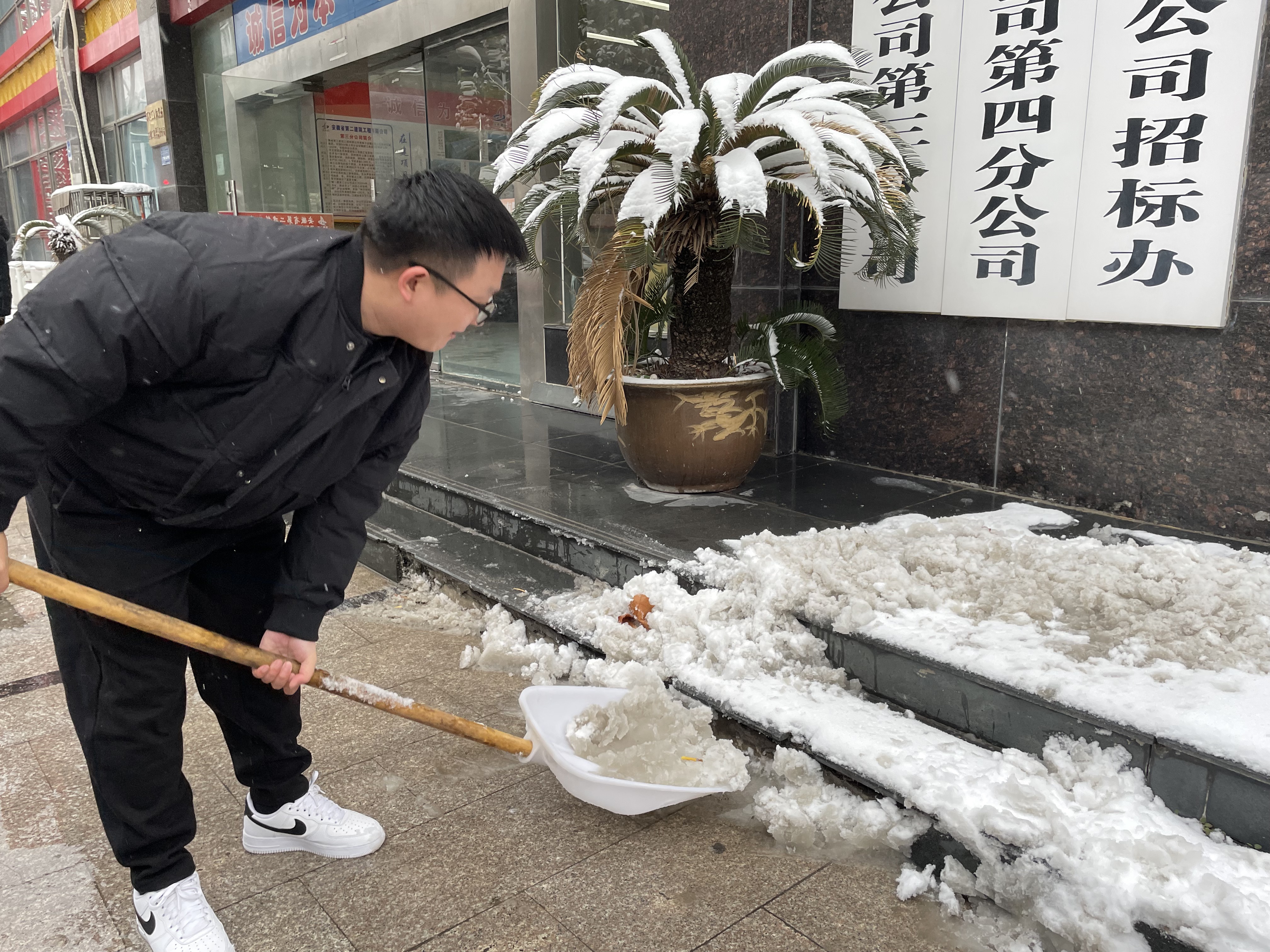 12月18日,合肥市迎來大范圍降雪,雪花飄舞,大地萬物銀裝素裹。與此同時(shí)也給人們的生活出行帶來諸多不便,為了確保群眾出行方便、安全,建工二建第四公司團(tuán)支部以雪為令、聞雪而動(dòng),積極開展清雪除冰行動(dòng)。