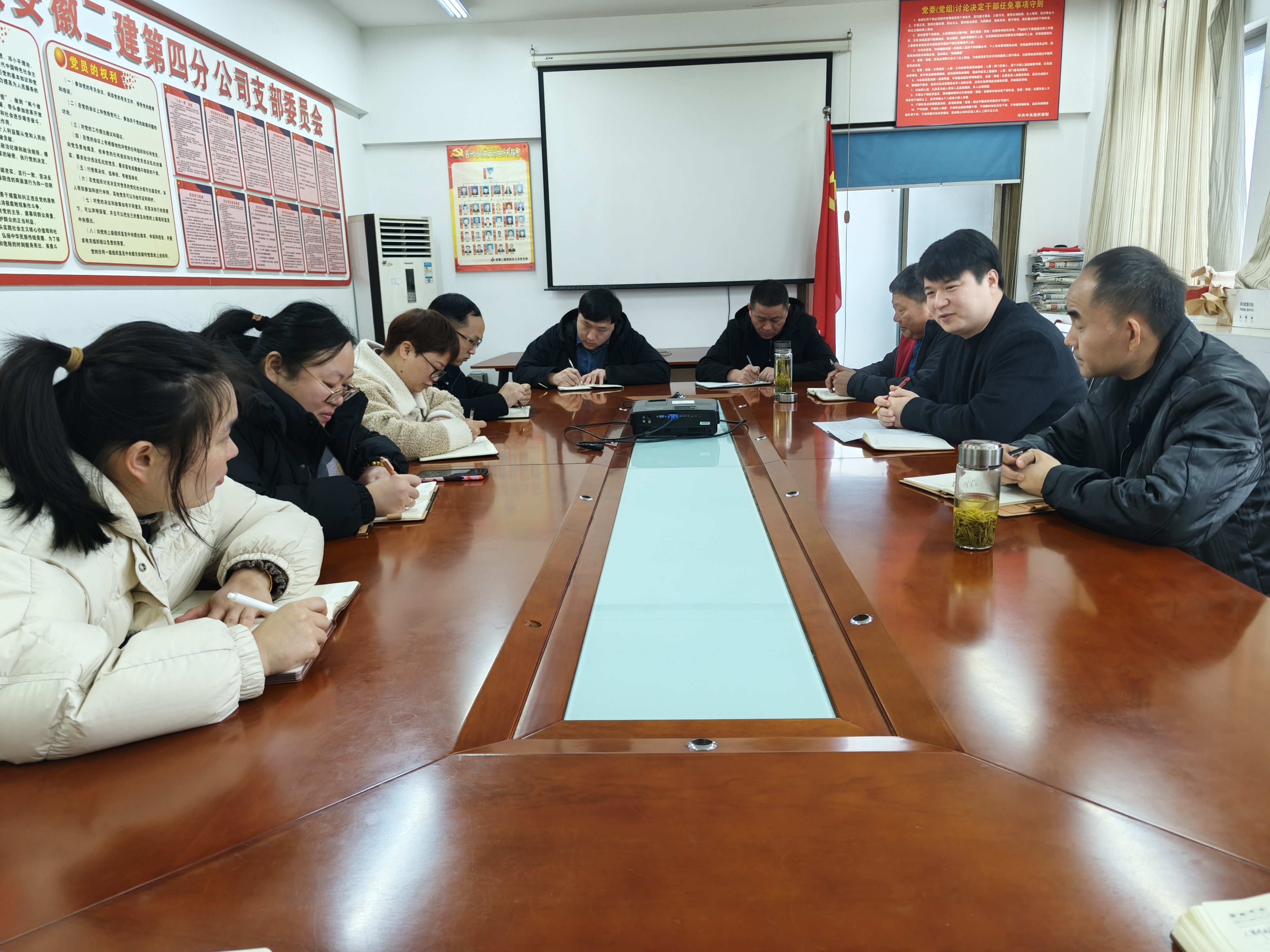 2024年2月18日上午,第四公司就春節(jié)后項(xiàng)目復(fù)工復(fù)產(chǎn)工作召開了專題會(huì)議。分公司領(lǐng)導(dǎo)班子成員、各科室負(fù)責(zé)人參會(huì),分公司經(jīng)理、黨支部副書記潘澤強(qiáng)主持會(huì)議。
