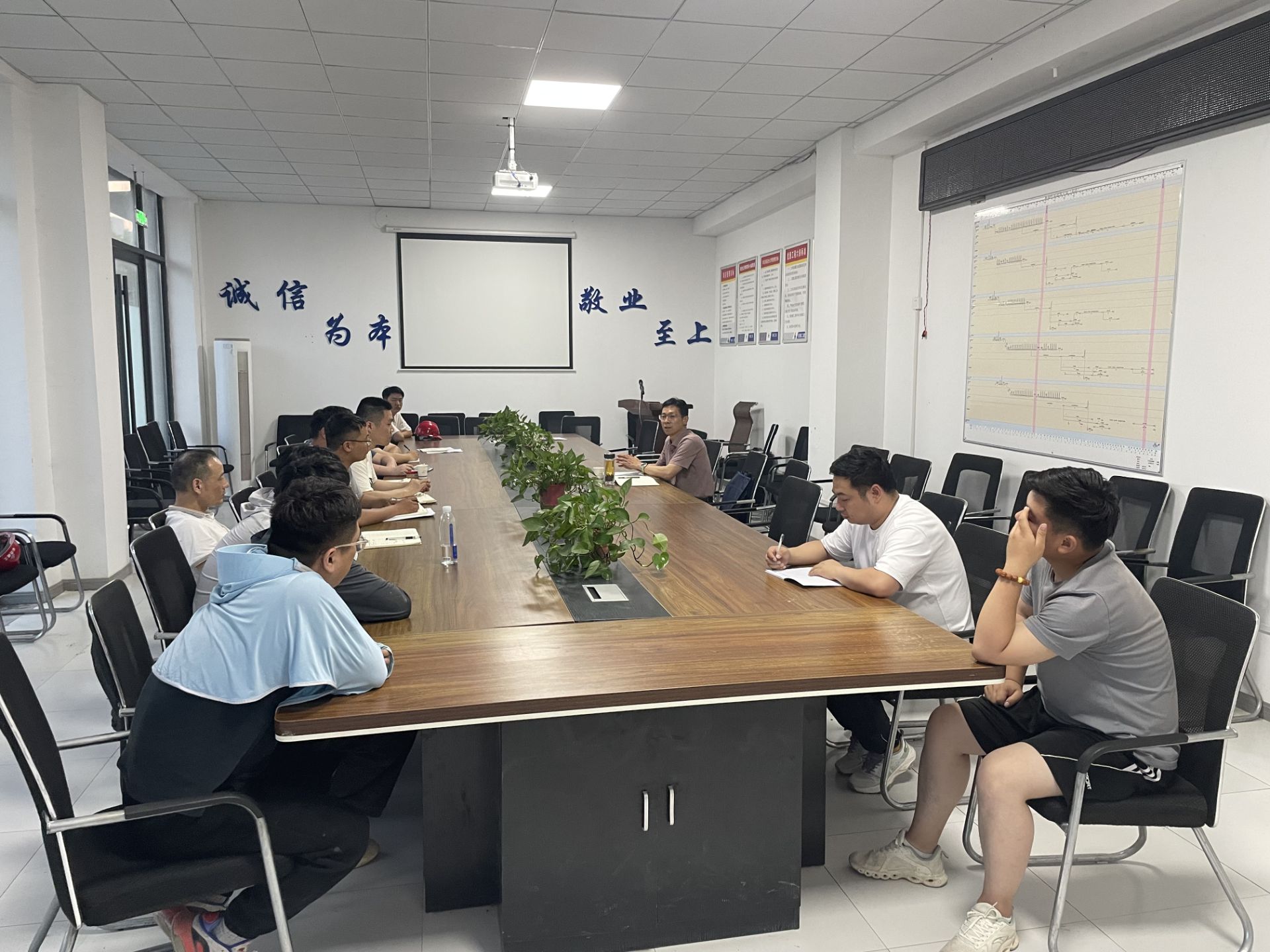 為推動(dòng)黨紀(jì)學(xué)習(xí)教育走深走實(shí),筑牢全體黨員干部黨規(guī)黨紀(jì)意識(shí),做到守紀(jì)律、講規(guī)矩、知敬畏,5月22日,第一分公司黨支部書記、副經(jīng)理施用宏帶領(lǐng)項(xiàng)目管理人員集中學(xué)習(xí)了《中國共產(chǎn)黨紀(jì)律處分條例》(第一編總則),圍繞組織紀(jì)律、廉潔紀(jì)律、群眾紀(jì)律進(jìn)行交流研討。