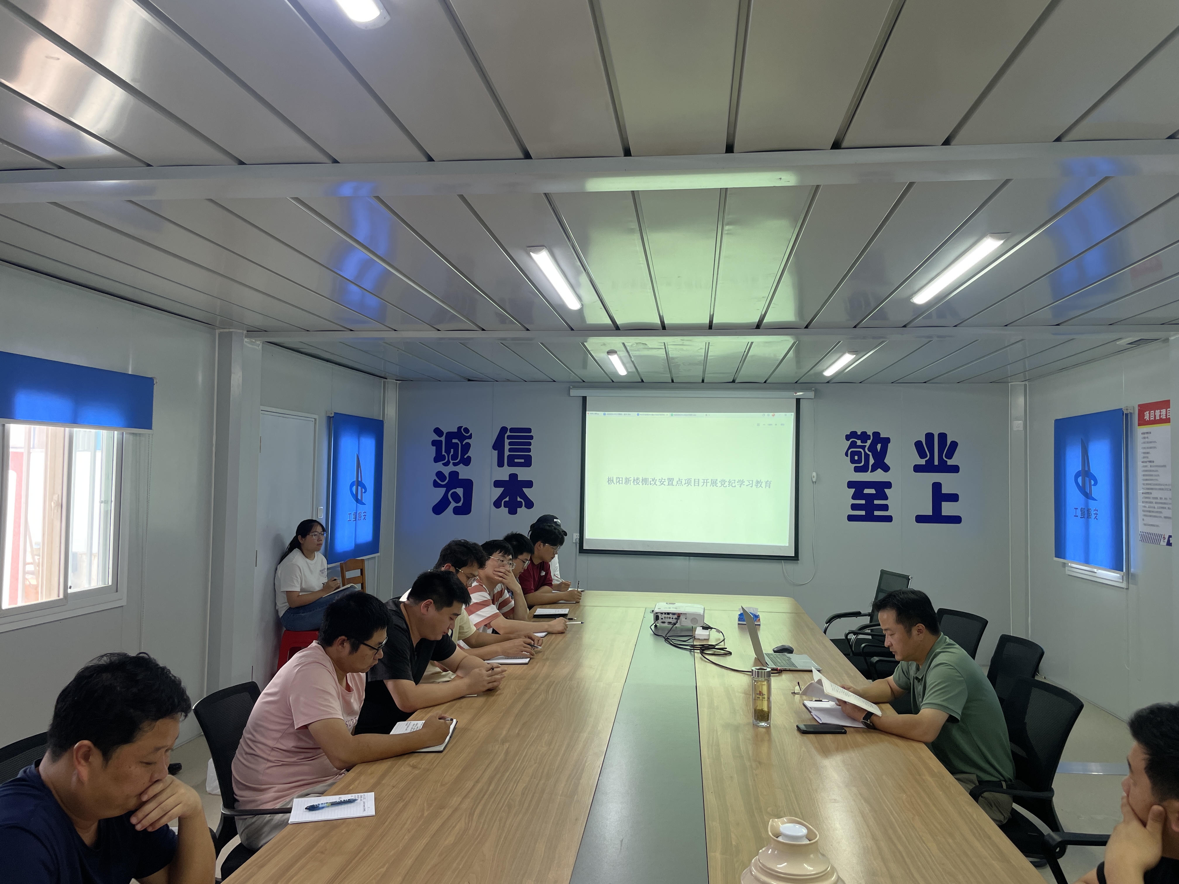 第三分公司副經(jīng)理卜洪劍赴樅陽新樓棚改安置點(diǎn)項(xiàng)目。他結(jié)合《條例》、典型案例分析等內(nèi)容進(jìn)行黨紀(jì)教育,解讀了開展黨紀(jì)學(xué)習(xí)教育的目的要求、內(nèi)容安排和重要意義,教育引導(dǎo)黨員干部學(xué)紀(jì)、知紀(jì)、明紀(jì)、守紀(jì),自覺遵守和堅(jiān)決維護(hù)黨紀(jì)黨規(guī)和公司規(guī)章制度。
