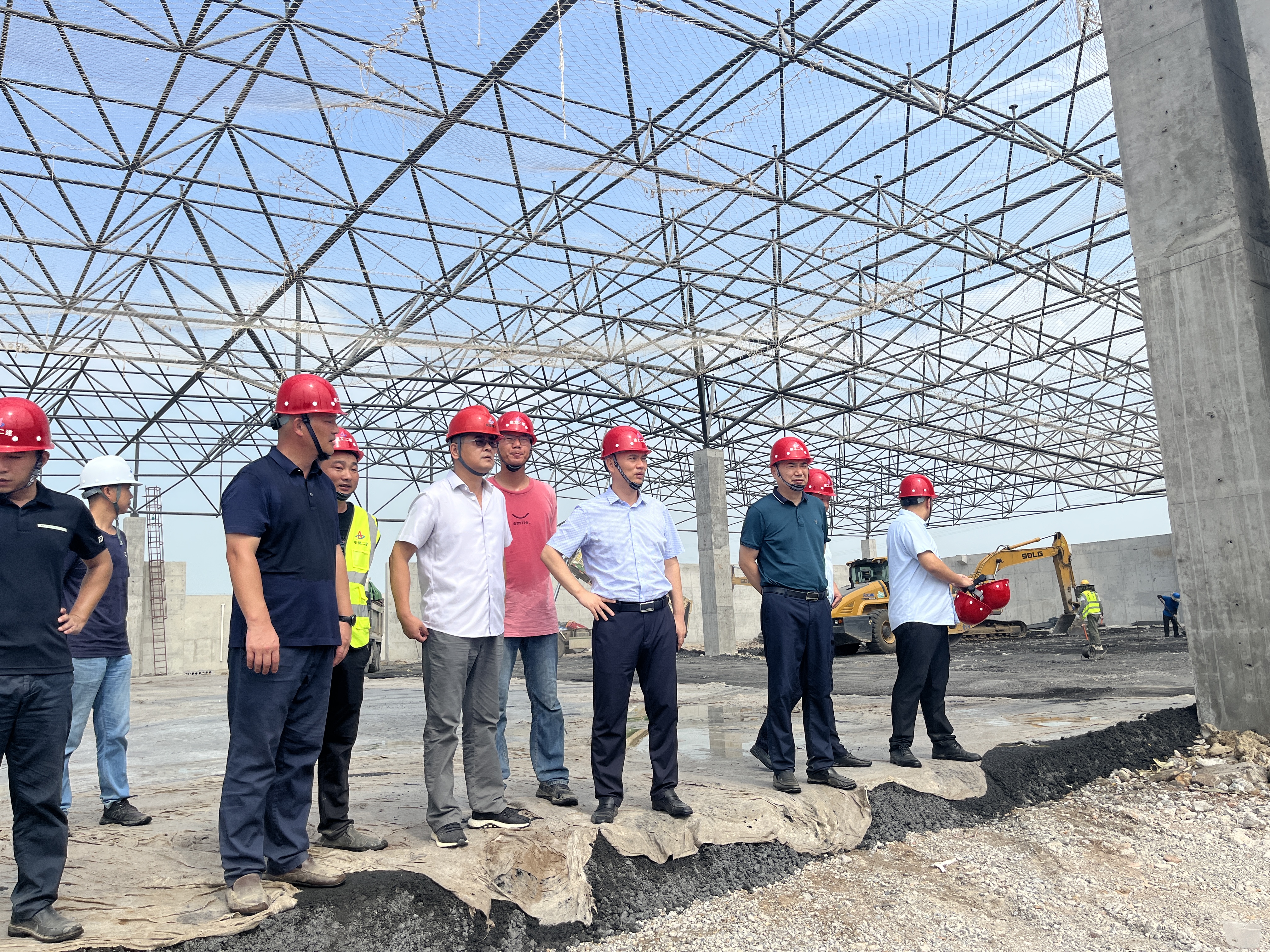 朱忠明一行深入施工現場,詳細了解工程進展、施工難點、質量把控措施和安全生產等情況,并就下一步工作提出四點要求:一是明確節點目標不動搖,一期8月31日全部完工投產,二期12月31日全部完工投產;二是加強安全生產,在搶工過程中要狠抓安全不放松;三是做好工程質量管控,保質保量完成施工任務;四是項目各參與方應各負其責、各盡其職,共克難關保證項目的順利完工。