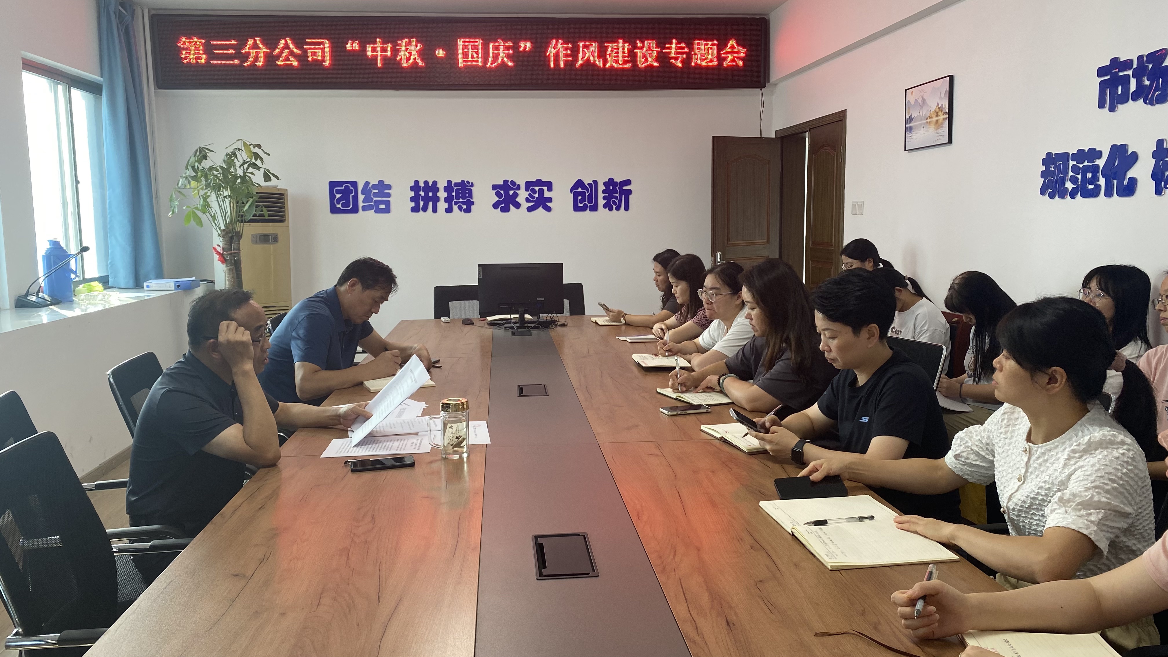 為進(jìn)一步加強(qiáng)“中秋、國(guó)慶”期間紀(jì)律作風(fēng)建設(shè),增強(qiáng)分公司全員廉潔自律意識(shí),營(yíng)造風(fēng)清氣正的節(jié)日氛圍,9月12日下午,第三分公司召開“中秋、國(guó)慶”節(jié)前作風(fēng)建設(shè)專題會(huì),會(huì)議由黨支部書記司圣華主持。