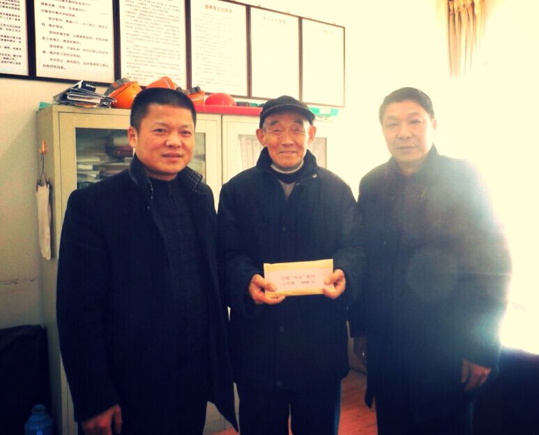 新年來臨前夕,2014年12月29日,公司黨委書記劉賢奇、工會主席李林等看望省級勞動模范王紹衡,將“兩節”慰問金送到王紹衡手中,并再三叮囑勞模保重身體,預祝老人“兩節”愉快。此次公司工會共為11名省部級勞模發放兩節慰問金74200元。