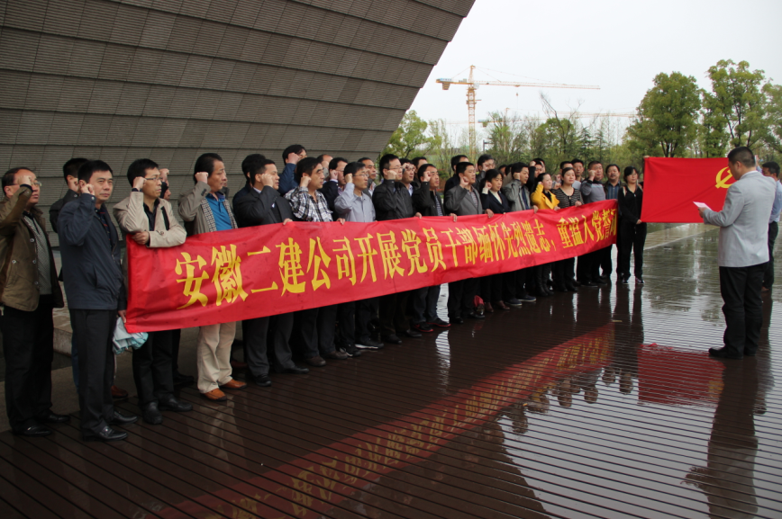 2015年4月2日,安徽二建黨委組織公司全體黨員干部共50人前往濱湖渡江戰(zhàn)役紀(jì)念館,開展主題為“黨員干部緬懷先烈遺志,重溫入黨誓詞,廉潔從業(yè)承諾”的教育實(shí)踐活動(dòng)。