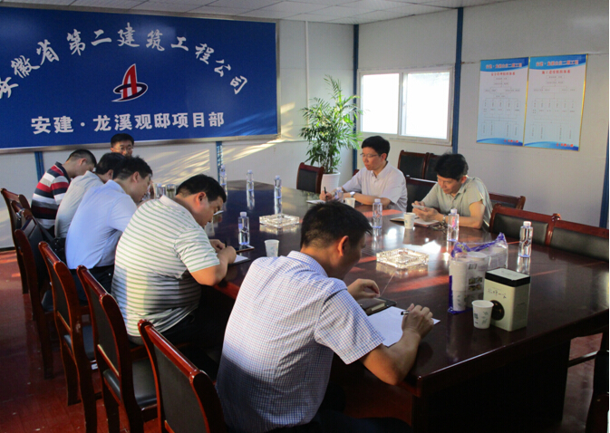 在隨后召開的現(xiàn)場工作會上,王厚良副總經(jīng)理對安建·龍溪山莊工程質(zhì)量和目前所取得的成績給予了充分肯定,對項目近期工作提出四點要求,一是要高標(biāo)準(zhǔn)、嚴(yán)要求,抓好現(xiàn)場安全文明施工和標(biāo)準(zhǔn)化施工,提高安徽建工集團在當(dāng)?shù)氐挠绊懥Γ欢且叨戎匾暟踩|(zhì)量,確保安全無事故,質(zhì)量無缺陷;三是要強化目標(biāo)責(zé)任制,充分調(diào)動全體員工的積極性;四是要加強人才培養(yǎng),對青年人,工作上要交真本領(lǐng),業(yè)務(wù)上要經(jīng)常開展技能培訓(xùn)。