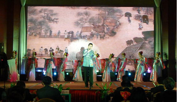 歌手章成銘動情的演唱,凌友和一段精彩的詠春拳展示以及10位姑娘們優美的伴舞,將節目從形式到內容演繹得淋漓盡致,博得臺下陣陣掌聲,為整場晚會的精彩演出開了好頭。