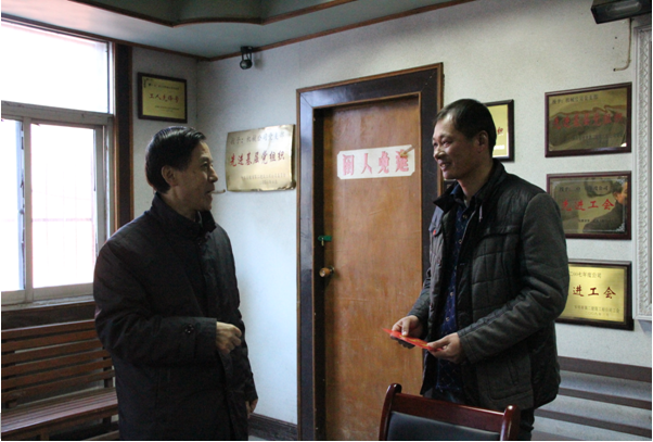 2017年1月16日下午,集團公司總經理劉家靜、工會主席徐曉光、工會副主席吳曉伍一行來到公司,開展春節前對困難職工的走訪慰問活動。公司黨委書記劉賢奇、工會主席李林等陪同慰問。