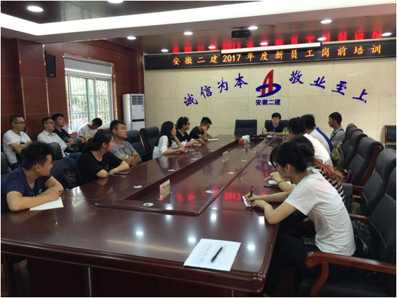 6月19日,安徽二建公司在一樓會議室對32名新進員工進行了崗前培訓。公司人力資源部負責人代表公司全體同事對新員工的到來表示歡迎,并向新員工介紹了企業目前發展狀況、規章制度、福利待遇等情況,以及本次培訓的課程安排。
