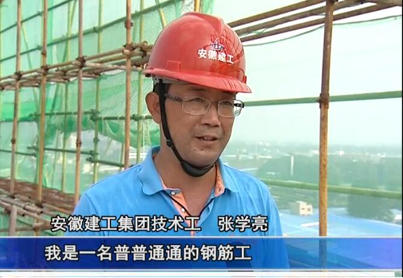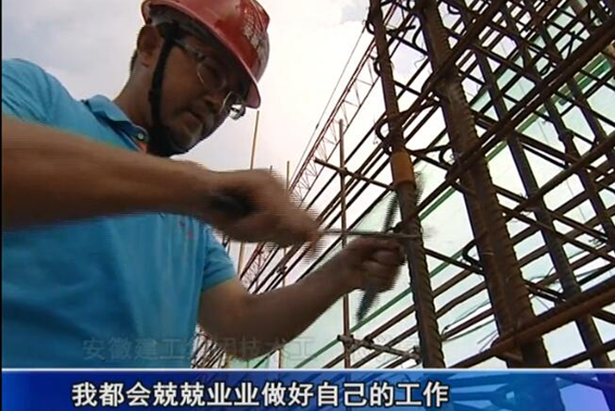 在商務樓十四層梁柱鋼筋綁扎作業施工現場,項目部鋼筋班組工人張學亮接受了電視臺的采訪,他向記者重點介紹了項目工程目前的施工進展情況、工作進度節點安排、夏季防暑降溫工作安排和平時在工作中遇到的施工工藝上的重難點問題所做出的積極努力。