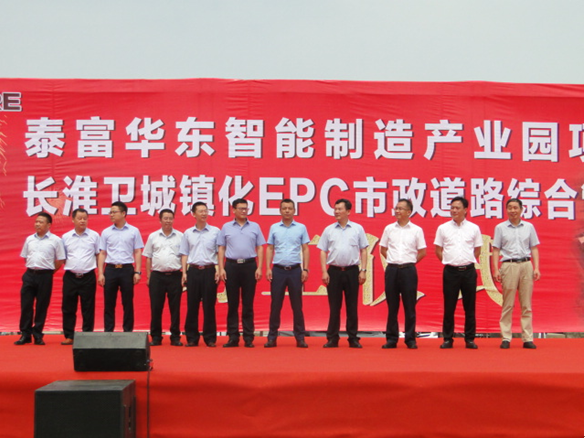 6月20日上午,由一分公司承建的蚌埠泰富華東智能制造產業園項目舉行隆重的開工儀式。泰富重裝集團副總裁、泰富華東重裝有限公司總經理陳明杰、泰富建設集團有限公司總經理吳海龍,公司有關領導出席了開工儀式。
