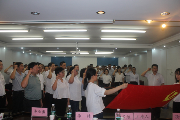 大會在莊嚴的國歌聲中拉開帷幕。仇多維宣讀安徽二建公司“一先三優”表彰決定,鼓勵先進,激勵廣大黨員同志向先進看齊,公司領導班子成員為受表彰的組織和個人頒發榮譽證書。隨后,在公司黨委書記劉賢奇的帶領下,五名新黨員進行入黨宣誓,全體黨員同志重溫入黨誓詞。