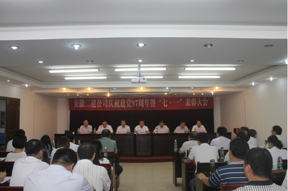 為慶祝中國共產黨成立97周年,表彰公司先進基層黨組織、優秀共產黨員、優秀共產黨員示范崗、優秀黨務工作者,7月3日上午,安徽二建公司召開慶祝建黨97周年暨“七一”表彰大會,公司領導班子成員,機關全體黨員、所屬各單位黨政領導班子成員(黨員)、所屬基層黨支部支委成員、受表彰的先進黨組織代表和優秀共產黨員、優秀共產黨員示范崗和優秀黨務工作者參加會議。會議由公司紀委書記仇多維主持。