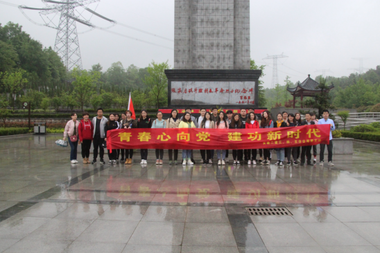 4月29日上午,31名團員青年乘坐大巴來到了張店鄉無名革命烈士陵園。一行人自覺排列好隊伍,由兩名青年抬著花籃,莊重肅穆地敬獻于廣場中央的紀念碑前,全體人員鞠躬默哀。隨后,面對團旗,團員青年們舉起右手重溫入團誓詞,響亮而堅定的誓詞響徹廣場。乍暖還寒,細雨從天空落下,在同志們的發絲凝結成小水滴,也絲毫不影響大家的熱血和激情。