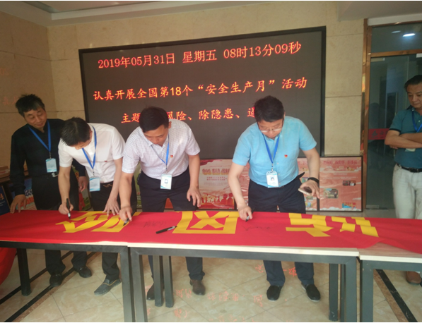2019年5月31日,公司安全管理部、工會(huì)在公司大院舉行了全國第十八個(gè)“安全生產(chǎn)月”活動(dòng)啟動(dòng)儀式,公司機(jī)關(guān)全體職工參加??偨?jīng)理陸勤斌作啟動(dòng)講話,指出安全生產(chǎn)工作的重要性和“安全生產(chǎn)月”活動(dòng)的意義。分管安全副總經(jīng)理葉和永帶領(lǐng)全體職工進(jìn)行了安全宣誓,隨后,在印有“安全生產(chǎn)月”主題“防風(fēng)險(xiǎn) 除隱患 遏事故”的橫幅上簽名。