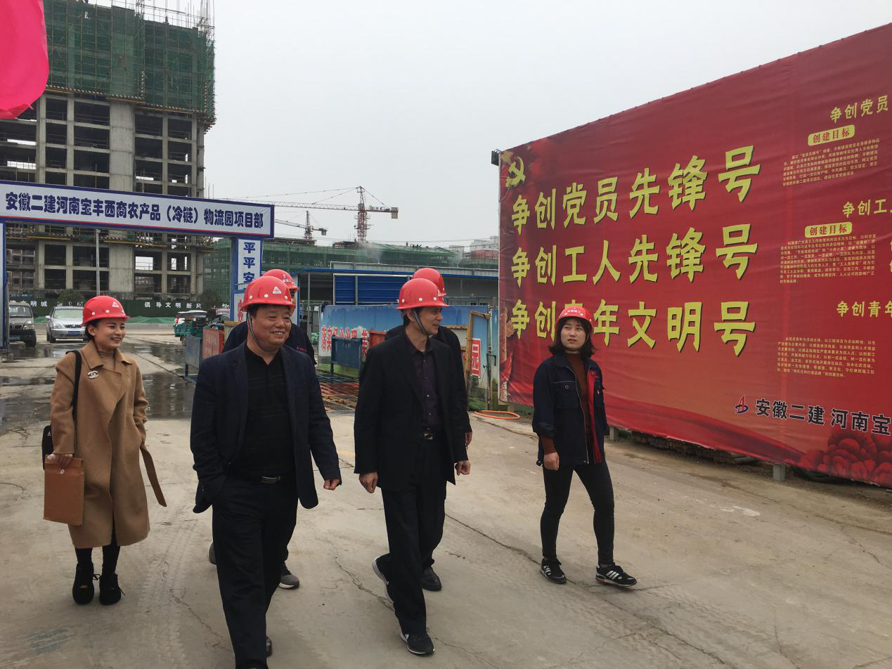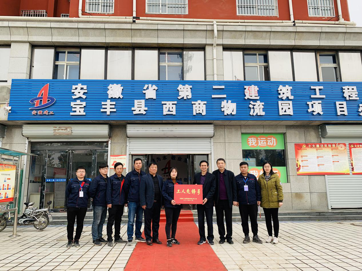 和煦的陽光溫暖愜意,細柔的春風馨香滿懷,4月10日,建工控股工會副主席吳曉伍、安徽二建公司副調研員李林、四分公司黨支部書記董建民等一行5人,來到安徽二建河南寶豐西商農產品(冷鏈)物流園項目現(xiàn)場驗收,并為項目“工人先鋒號”授牌。