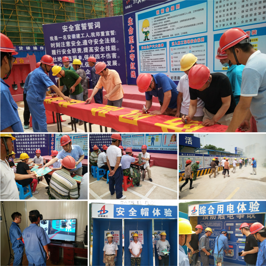 活動當天,共發(fā)放安全宣傳資料100余份,接受項目職工咨詢50余人次;開展預(yù)防高墜、中暑及火災(zāi)救援演練;給工友們體檢,告知夏季高溫季節(jié)施工注意事項;帶工友們觀看圖片展覽,講解安全生產(chǎn)知識,到安全教育體驗館進行實體和VR虛擬體驗;現(xiàn)場全體人員參與宣誓及簽名活動?,F(xiàn)場活動結(jié)束后,安全管理部在會議室開展安全主題宣講活動,帶領(lǐng)項目職工學(xué)習(xí)《安全生產(chǎn)條例》及《建筑安全生產(chǎn)標準化示范工地評價標準》(DB34/T5040-2016),組織項目管理人員開展安全生產(chǎn)經(jīng)驗交流會,總結(jié)工作亮點,查找不足,促進今后工作的順利開展。