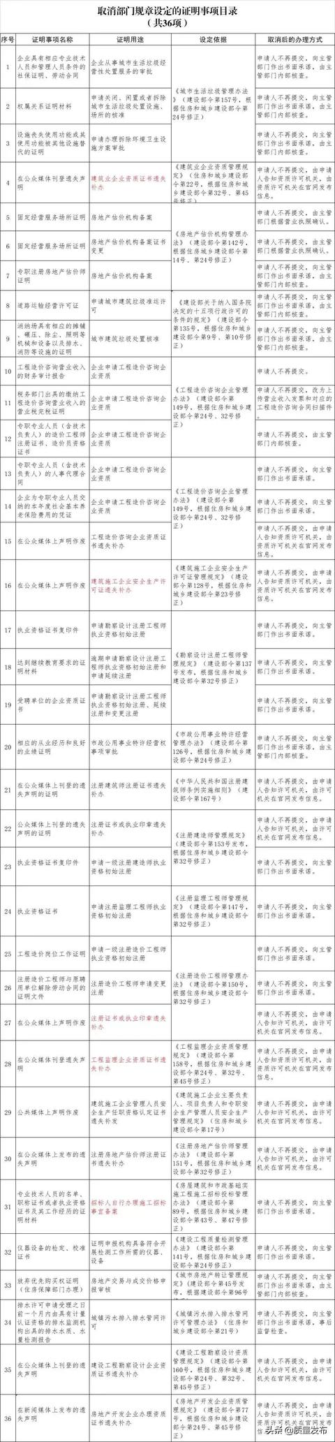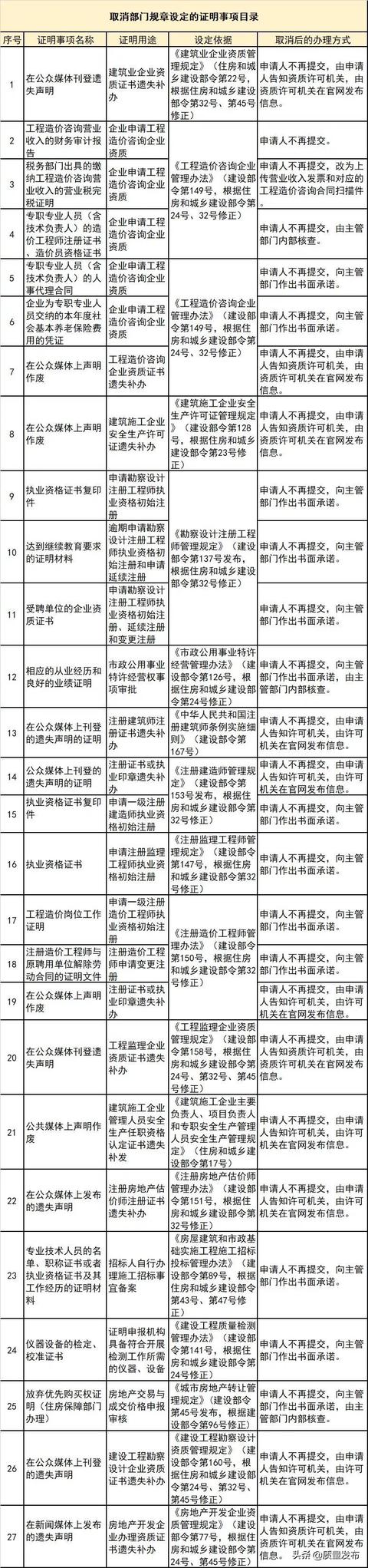 為貫徹落實黨中央、國務院關于減證便民、優化服務的部署要求,住房和城鄉建設部決定取消部分部門規章和規范性文件設定的證明事項,相關證明事項自公布之日起取消。