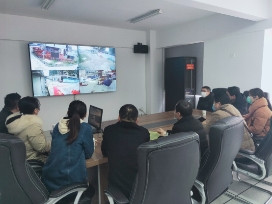 會上,衛邦齊一行聽取了二建遠程監控指揮中心的建設歷程,了解了二建監控系統結構、監控設備組成等情況。隨后,安全管理部遠程調取了各工地視頻畫面、操作塔吊攝像頭運動演示;在監控中心通過系統遠程指揮淮北國金華府項目安全員,利用執法儀對工地沖洗臺、人防電梯、材料堆放處、塔吊、框架內部等區域做日常安全巡檢工作。