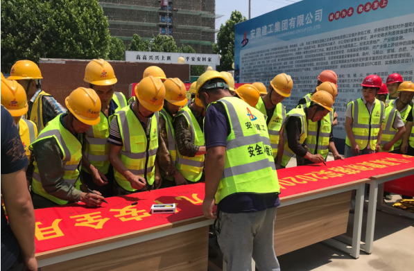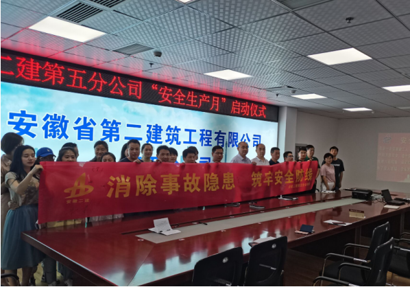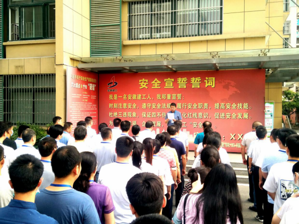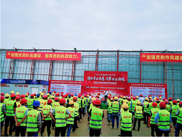 6月1日上午,安徽二建公司舉行了“安全生產月”啟動儀式,公司領導、機關全體職工100余人參加。總經理陸勤斌作了講話,指出安全生產工作的重要性和“安全生產月”活動的意義,宣布2020年“安全生產月”活動正式啟動。全體職工在安全總監曹建的帶領下進行了安全宣誓,隨后,大家在印有“安全生產月”主題“消除事故隱患,筑牢安全防線”的橫幅上簽名。公司所屬各單位、各項目部同步開展了啟動儀式。