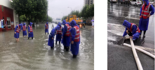 為積極響應瑤海區政府和公司抗洪搶險號召,7月18日二分公司第一時間成立兩支抗洪搶險突擊隊,準備雨衣、雨鞋、鐵鍬、水泵、配電箱、電纜等物資20分鐘極速趕到抗洪前線,代表公司參加瑤海區住建局統一調度抗洪搶險工作,救災現場有的架設水泵、有的鋪設電纜、有的配合抽水排澇,分工明確、爭分奪秒,力爭將群眾的損失降到最低。