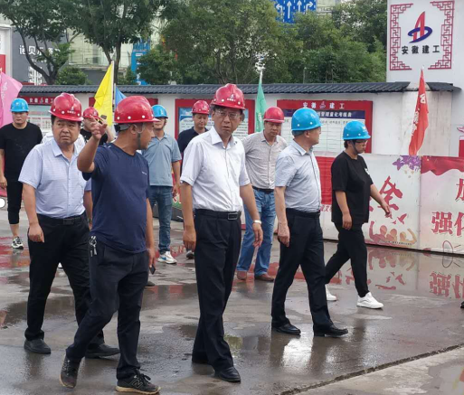 胡亮一行先后查看了項目的疫情防控、農民工實名制管理、安全文明施工、揚塵治理、防暑降溫等工作,詢問項目概況、合同工期、施工進度等相關事項,了解業主招商和運營情況。視察中,各位領導對施工現場的環形道路專人灑水、圍墻設置噴淋系統、道路兩側污水排放及定型化防護等工作給予充分肯定和表揚,要求項目繼續做好疫情防控工作,做到“內防反彈,外防輸入”。