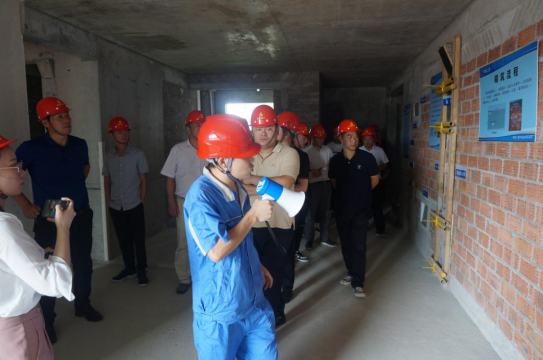 隨后,對一分公司山香安置房項目進行了觀摩。作為二建公司承建的第一個裝配式建筑,項目部對裝配式施工的器具、工藝流程、施工重點、亮點進行了詳細講解。通過對現場裝配式樣板間及實體觀摩學習,對裝配式建筑有了更深的了解。