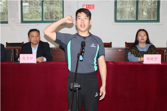 隨后運動員代表端建軍和裁判員代表余鴻順分別進行了宣誓,公司總經理、黨委副書記陸勤斌宣布安徽二建公司第四屆職工籃球賽正式開幕,饒曉寧主任為首場比賽開球。