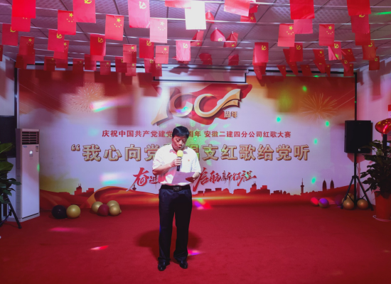 6月24日晚,由安徽二建四分公司黨支部、工會、團支部聯合舉辦的“傳唱紅歌、歌頌祖國”紀念建黨100周年主題紅歌賽在宿州三館一院一中心PPP項目部會議室隆重舉行,機關科室和所屬項目部的十六支隊伍參加了比賽,用歌聲頌黨,以行動獻禮。