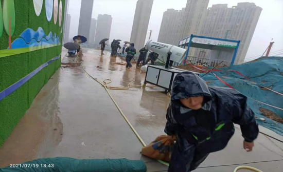 7月20日,河南省鞏義市氣象臺先后發(fā)布暴雨紅色預(yù)警信號、雷電黃色預(yù)警信號,此時(shí)鞏義市已連續(xù)降雨48小時(shí)。所處鞏義市的安徽二建四分公司紫薇苑項(xiàng)目部立即啟動防汛應(yīng)急預(yù)案,上下“總動員”,第一時(shí)間將已備好的防汛物資運(yùn)送到現(xiàn)場,全力開展防汛排澇工作,打響2021年鞏義項(xiàng)目防汛第一槍。