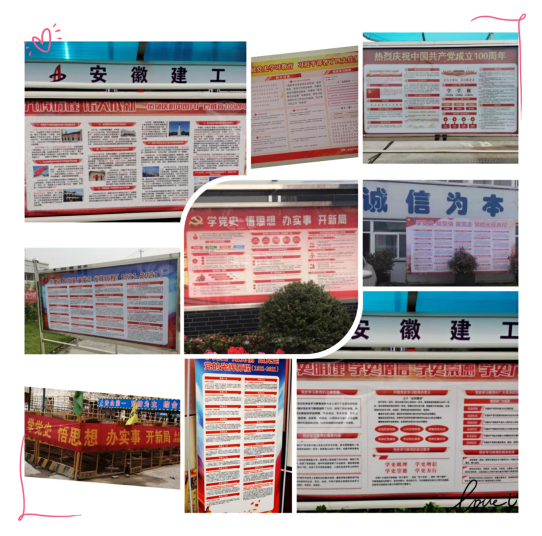為慶祝中國(guó)共產(chǎn)黨建黨成立100周年,鞏固“不忘初心、牢記使命”主題教育成果,引導(dǎo)廣大職工緊緊圍繞學(xué)懂弄通做實(shí)黨的創(chuàng)新理論,做到學(xué)史明理、學(xué)史增信、學(xué)史崇德、學(xué)史力行,分公司黨支部號(hào)召各項(xiàng)目部開(kāi)展“制展版 學(xué)黨史”活動(dòng)。