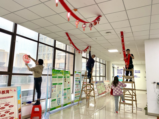 辭舊迎新,迎春接福,大掃除是迎新年重要的環節。青年團員們分工勞作,有人拿起掃帚、抹布打掃辦公區域、衛生死角,有人張貼窗花、迎春裝飾,經過辛勤勞動,大家將辦公用品擺放整齊,桌面保持清潔干凈,使得辦公環境更加整潔明亮,紅彤彤的窗花和新年快樂裝飾為大家營造了更加舒適的節日環境。