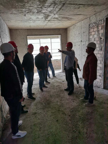 項目負責人司建軍對項目概況及各項質量標準化落實情況等進行匯報,驗收小組嚴格對照建設工程施工質量標準化管理六大驗收表內容對現場和工程資料進行查驗。對項目部實測數據上墻、磚砌體灰縫控制及垂直度等控制管理工作表示認可,對項目非實體樣板區工序齊全、詳細,樣板精確等優點,給予了較高評價。