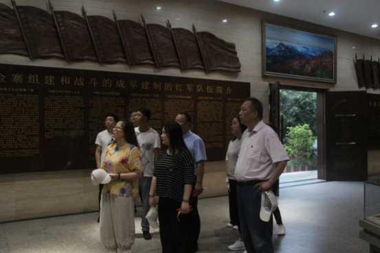首先,大家來到了位于金寨縣梅山鎮的紅軍廣場,參觀了烈士紀念館、革命博物館、洪學智將軍紀念碑、紅軍烈士墓園、紅軍紀念堂,瞻仰了革命烈士紀念塔。在紀念館前,全體人員向革命烈士鞠躬,表達了對革命烈士的深切緬懷和無限敬仰。在革命博物館,大家仔細觀看一張張歷史圖片、一段段文字資料、一件件珍貴文物,親身感受革命先烈們為尋求真理而不惜拋頭顱、灑熱血的英雄壯舉,接受了一次心靈的洗禮和思想的凈化,受到了一次深刻的革命傳統教育。