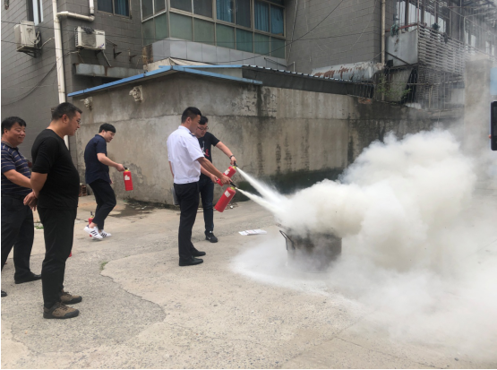 講座結束后,教官組織全體人員進行消防應急演練,詳細介紹了手提式干粉滅火器的基本原理和使用方法,并現場親自示范操作。現場員工在教官的指導下圓滿完成了火災撲救的實戰演練。