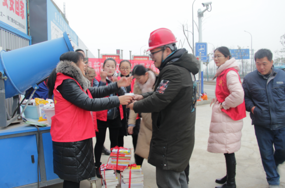活動現場,項目部成員與志愿者們在錦門·繁華里工地門口支起愛心粥鋪,把一碗碗香暖四溢的臘八粥送到每一位民工手上,讓大家能夠在寒冷的冬季感受到社會的溫暖,體會到了社會各界對民工朋友們的關愛,送粥的同時,志愿者們還給民工朋友們送上各類書籍,讓民工朋友們也享受到閱讀的樂趣。
