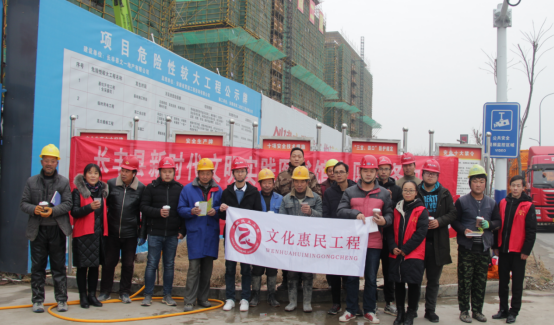 為了讓民工朋友感受到來自社會各界的關心和祝福,1月2日,文一·錦門繁華里項目部聯合長豐縣圖書館、縣新時代文明實踐圖書館志愿服務中隊、水湖鎮伍崗社區走進錦門·繁華里施工現場開展“一碗臘八粥、溫暖民工心”文化惠民活動。