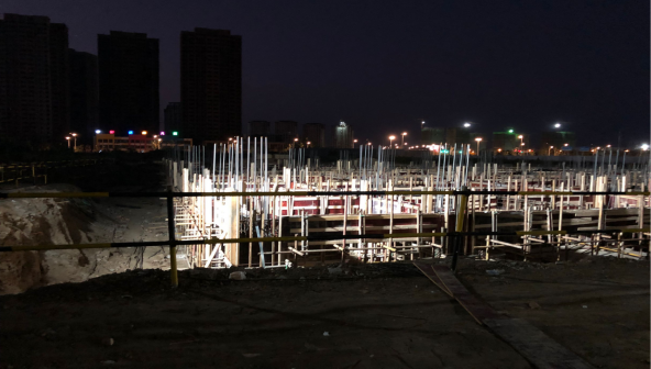阜陽文一·云棲天境項目部于2019年8月底組建。項目團(tuán)隊進(jìn)場時,土方開挖剛剛啟動,所需要的施工圖紙--沒有,施工許可文件--沒有,臨時設(shè)施用地--不提供!如此等等。面對一個又一個的難題,項目管理人員沒有毫言壯語,只有樸實而堅毅的信念--只為困難找辦法,不為困難找理由,火力全開,全速推進(jìn)項目建設(shè)!