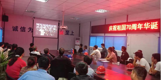 2019年10月1日上午8點(diǎn),宣城利華世紀(jì)新城三期工程項(xiàng)目黨支部組織項(xiàng)目人員觀看祖國70周年慶典,各部門人員早早安排好工作,端坐在項(xiàng)目部會(huì)議室觀看慶典直播。
