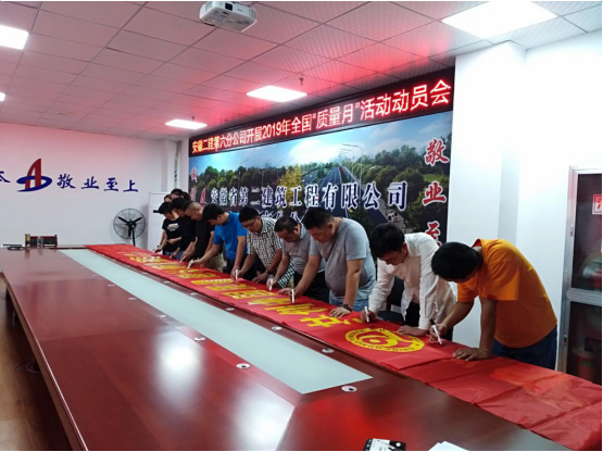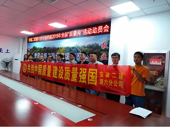 為認(rèn)真落實安徽建工集團(tuán)股份有限公司關(guān)于開展2019年“質(zhì)量月”活動的通知,9月3日,第六分公司召開2019年“質(zhì)量月”活動專題會進(jìn)行宣貫,組織職工進(jìn)行橫幅簽名活動,以“共創(chuàng)中國質(zhì)量 建設(shè)質(zhì)量強(qiáng)國”為主題,大力營造“人人重視高質(zhì)量,人人創(chuàng)造高質(zhì)量,人人享受高質(zhì)量”的良好氛圍,進(jìn)一步規(guī)范質(zhì)量安全行為,提高質(zhì)量安全管理水平,全面提升項目管理水平,要求項目部按照“質(zhì)量月”活動內(nèi)容,結(jié)合項目實際,精心安排、周密部署,以“質(zhì)量月”活動為契機(jī),加大項目質(zhì)量宣傳力度,進(jìn)一步提高全員質(zhì)量意識,開展質(zhì)量示范創(chuàng)建,創(chuàng)建公司質(zhì)量品牌,牢固樹立全心全意為用戶提供優(yōu)質(zhì)服務(wù)的安徽建工一流企業(yè)現(xiàn)象。