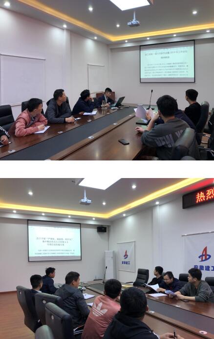 3月18日晚上,文一·塘津門五標段項目組織召開《建工控股一屆六次職代會暨2019年工作會議》 《關于開展“嚴規矩、強監督、轉作風”集中整治形式主義官僚主義專項行動實施方案》專題學習會,會議由項目經理蒯聲文主持,項目部全體員工參會。