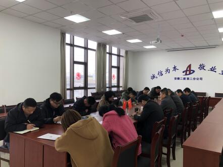 支部書記黃業云帶領大家學習了《關于印發<安徽二建公司堅決打好防范化解重大風險攻堅戰工作方案>的通知》文件精神,并對公司3月8日召開的堅決打好防范化解重大風險攻堅戰動員部署會議精神進行了宣貫。會上根據《安徽二建第二分公司堅決打好防范化解風險攻堅戰工作方案》的工作部署,要求各科室及項目部思想上高度重視,防范化解重大風險工作要抓細抓實,結合工作實際,梳理重大風險源,明確到人,責任到人,項目部按照分公司文件時間節點要求,形成書面材料上報至分公司對口科室。
