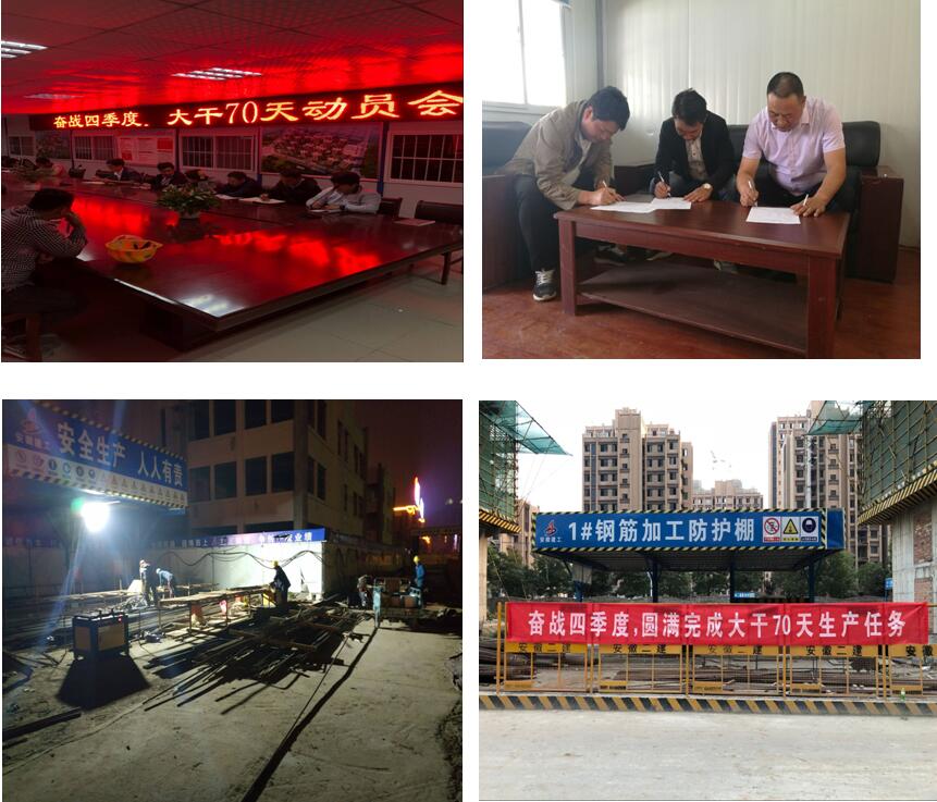參賽項目已全面進入競賽狀態,宣傳橫幅隨處可見,大干氛圍濃厚。分公司要求各項目部在保證質量、安全的前提下,加班加點,克服困難,為實現“大干七十天”達到預定目標而不斷努力!
