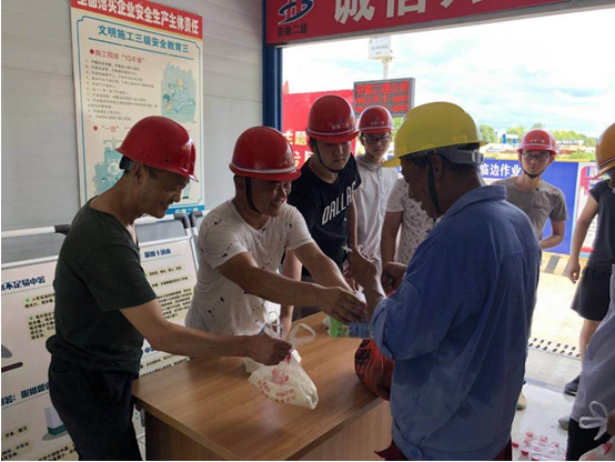 為了響應(yīng)公司開展的防暑降溫送清涼活動(dòng),關(guān)愛在高溫一線作業(yè)的員工,項(xiàng)目部領(lǐng)導(dǎo)分三組帶隊(duì)將冰涼的礦泉水送到員工手中。一句普通的叮囑拉近了大家的關(guān)系,也得到了一線員工的稱贊,既鼓舞了全體員工的干勁,同時(shí)也加強(qiáng)了對(duì)現(xiàn)場(chǎng)安全、防暑降溫的宣貫。